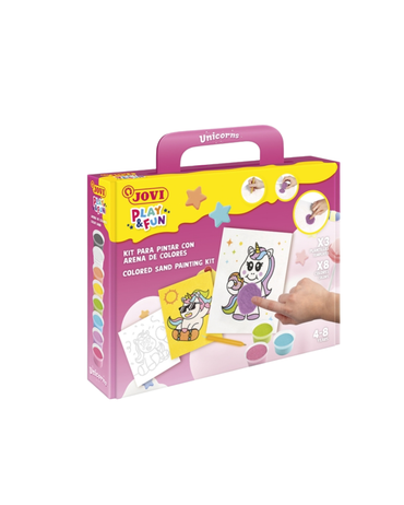 Jovi Play & Fun Kit Pinta com Areia Unicórnios – 8 Cores + Punção + 3 Lâminas